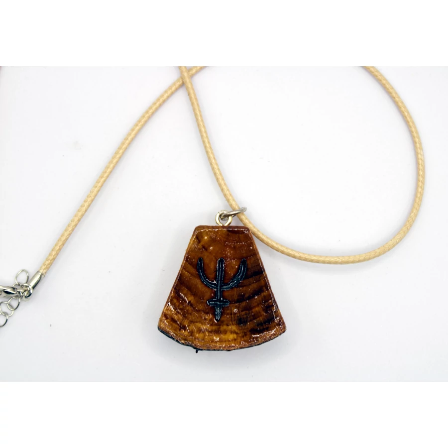 A medál alapanyaga meggyfa, csónaklakkal kezelve a tartósság végett. (UV és kopásálló)
